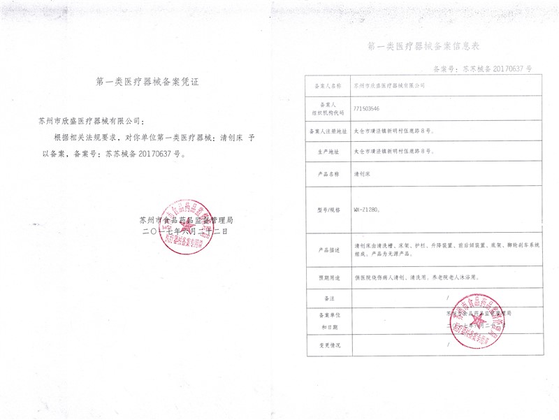 第一類醫療器械備案憑證